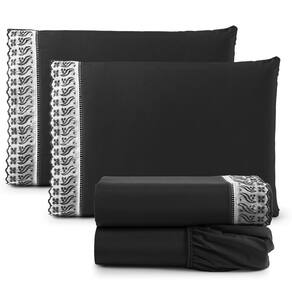 Jogo Cama Lençol Paris Casal Padrão Percal 180 Fios 100% Algodão Lese Bordada 4 Peças - Preto - Única