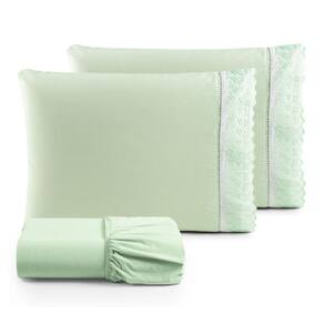 Jogo Cama Lençol Paris Queen Percal 180 Fios 100% Algodão Lese Bordada 3 Peças - Verde - Única