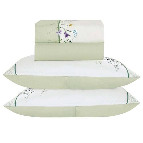 Jogo de Cama Lençol Queen Bouquet Percal 300 Fios 4 Peças - Verde