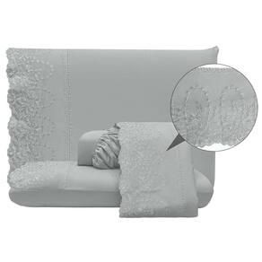 Jogo de Cama Lençol Queen Desirre 4 Peças - Cinza - 100% Poliéster