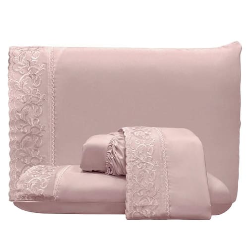 Jogo Cama Lençol Queen Top Line 4 Peças Rosê 100% Poliéster