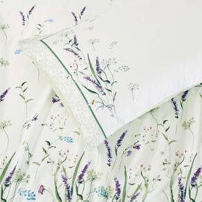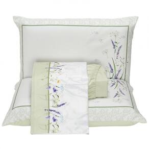 Jogo Cama Lençol Santorini Queen Estampa Florida Percal 300 Fios 4 Peças - Verde Lavanda - Única