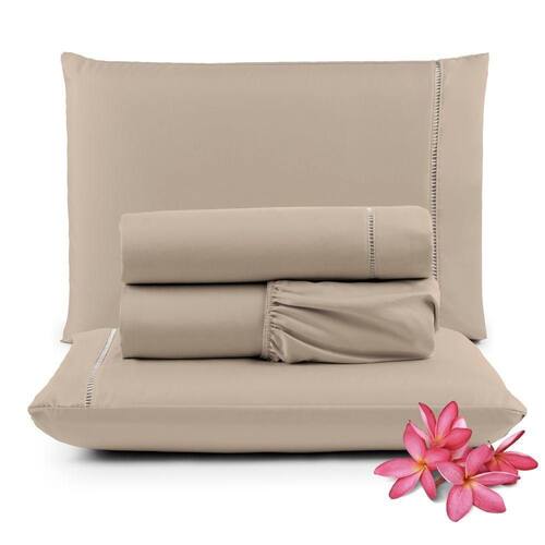 Jogo Cama Lençol Unique Queen 400 Fios Ponto Palito 4 Peças - Avelã