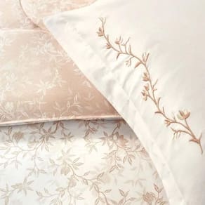 O Jogo de Cama Queen Maitê Karsten é uma combinação perfeita de conforto, elegância e riqueza nos detalhes. Confeccionado em 100% algodão brasileiro e fio penteado, o Toque Soft 200 proporciona o máximo de conforto de um tecido 200 fios. O lençol estampado com belos ramos de flores possui dobra feita e bainha comum, adicionando um toque de sofisticação ao ambiente, enquanto o lençol com elástico tinto branco garante um ajuste perfeito e firme no colchão. As fronhas, também tintas, possuem três abas de 4 cm e um bordado localizado floral que confere um detalhe especial e delicado. Este conjunto é ideal para quem busca qualidade e beleza, transformando o quarto em um espaço de descanso e bem-estar.