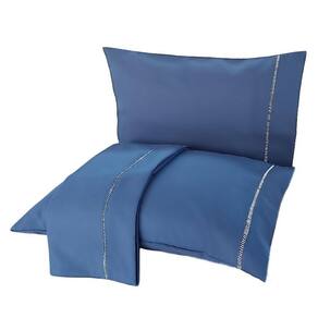 Jogo de Cama Queen 3p Lençol sem Elástico + Fronha 100% Algodão Percal Rubi Cor: Azul marinho Mais beleza para o seu dia a dia e conforto para as suas noites de sono.