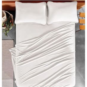 Jogo Cama Queen 4 Pcs Malha Algodão Fio Penteado Branco