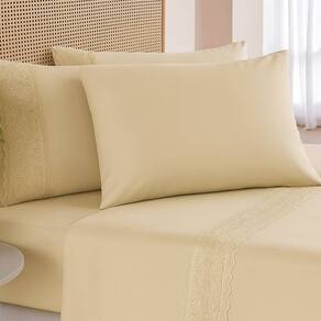 O diferencial está no delicado bordado inglês aplicado no sobre lençol e nas fronhas, que traz elegância e charme à sua cama. Além disso, o lençol com elástico garante praticidade e ajuste perfeito ao colchão.