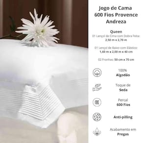 Para quem busca o máximo em qualidade e sofisticação, este jogo de cama é a escolha perfeita. Confeccionado com o algodão exclusivo de 600 fios e com um toque sedoso que lembra a delicadeza da seda, ele transforma o ambiente em um verdadeiro refúgio de bem-estar. As cores neutras em marfim e branco garantem um estilo discreto e refinado, ideal para compor um quarto de extremo bom gosto.