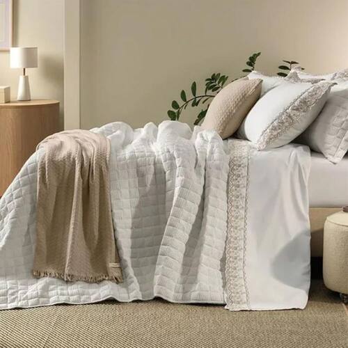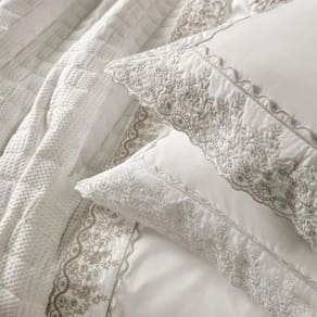Jogo Cama Queen Bordado 200 Fios Percal Antônia 100% Algodão Branco Karsten Jogo de Cama Queen Bordado 200 Fios Percal 100% Algodão Antônia Branco/ O Jogo de Cama Queen Antônia Karsten, combina elegância e conforto para transformar a sua cama. Este conjunto inclui um sobre lençol tinto com dobra feita e aplicação de tira bordada, um detalhe sofisticado que enriquece a peça. O lençol com elástico tinto garante um ajuste perfeito ao colchão, proporcionando praticidade e beleza. As fronhas brancas também possuem aplicação de tira bordada nos três lados, completando o conjunto com um acabamento refinado e delicado. Confeccionado 100% em algodão, o jogo de cama Antônia oferece o Toque Soft da Karsten, que é macio e ideal para noites de sono reparadoras. Transforme o seu quarto em um lugar de máximo conforto e estilo com o Jogo de Cama Queen Antônia. Altura do Lençol: 40cm Quantidade de Peças: 4 Peças Tamanho: Queen Estilo: Clássico Tecido: Percal de Algodão Composição: 100% Algodão Tipo: Bordado Aplicado Quantidade de Fios: 200 Fios Itens Inclusos: 1 Sobre Lençol; 1 Lençol De Elástico; 2 Fronhas Medida: Sobre Lençol: 2,40m x 2,50m; Lençol de Elástico: 1,58m x 1,98m x 40cm; Fronha 50cm x 70cm Acabamento Sobre lençol tinto com dobra feita e aplicação de tira bordada; Lençol com elástico tinto; Fronha tinta com aplicação de tira bordada nos 3 lados; Toque Soft; Sensação de cama de hotel; Tecido mais encorpado e macio; Amassa menos; Hipoalergênico; Altamente respirável Marca: Não Informado