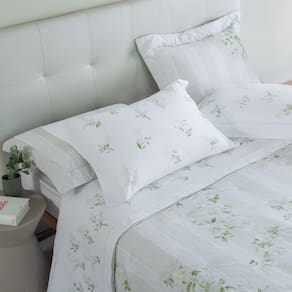 Gran Percalle 200 fios: maciez superior e conforto absoluto Estampa floral aquarelada: delicadeza, frescor e sofisticação Acabamento em ponto ajour: detalhe refinado que valoriza a cama Tecido 100% algodão de fibra longa: respirabilidade, resistência e bem-estar Qualidade Buddemeyer: referência em estilo e excelência têxtil