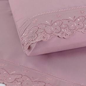 O Jogo de lençol para cama Queen com 04 peças confeccionado em tecido Micropercal 200 fios, detalhes em bordado inglês na fronha e no lençol de cima. Possui alto padrão de qualidade, proporciona conforto e sofisticação.