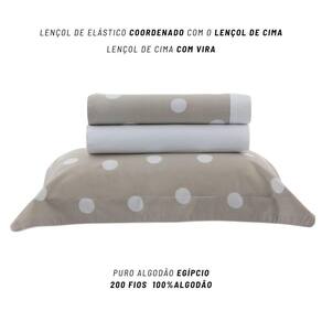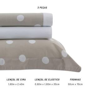 Contém: 03 Peças 01 Lençol de cima com vira Solteiro 1,60x2,40m 01 Lençol de baixo Solteiro com Elástico 0,90x1,90m com 30cm de altura 01 Fronha 0,50x0,70m Estampa: Poa Marc