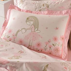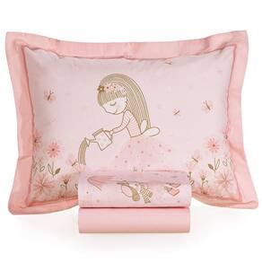Apresentamos o encantador Jogo de Cama Infantil Lily Karsten, que traz um toque de magia e delicadeza ao quarto das pequenas. Na suave cor Rosa, o sobre lençol é adornado com uma estampa encantadora que inclui nuvens rosas, bailarinas e bichinhos flutuantes. O lençol com elástico com uma suave estampa de bolinhas, garante um ajuste perfeito e firme ao colchão, enquanto a fronha com quatro abas de 4 cm destaca uma graciosa bailarina regando flores, cercada por borboletas e estrelas cintilantes.