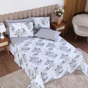 Jogo de Cama Solteiro 2p Lençol sem Elástico + Fronha 100% Algodão Percal Esmeralda Cor: Floral cinza Mais beleza para o seu dia a dia e conforto para as suas noites de sono.