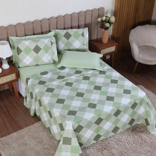 Jogo de Cama Solteiro 2p Lençol sem Elástico + Fronha 100% Algodão Percal Esmeralda Cor: Xadrez verde Mais beleza para o seu dia a dia e conforto para as suas noites de sono.