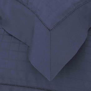 Jogo Cama Solteiro 300 Fios Damask Square Azul Buddemeyer Jogo de cama solteiro Damask Square. Em tecido 100% algodão Fio Penteado, cetim 300 fios de excelente qualidade. Para altura de colchão até 35cm. A linha Damask Square traz o equilíbrio perfeito entre luxo e conforto. A fina confecção permite a combinação entre um tecido adamascado e um liso, ambos em cetim 300 fios de altíssima qualidade, o que garante um visual elegante e valoriza o brilho natural das peças. Fronha 3 abas com acabamento em ponto ajour; lençol com elástico para altura de colchão até 35cm; sobrelençol com acabamento em ponto ajur. A Buddemeyer é referência em qualidade e estilo.