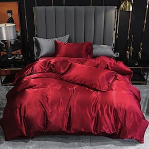 Jogo de cama Solteiro completo 7 peças cetim toque de seda - Vermelho com Graffiti