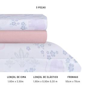 Contém: 01 Lençol de Cima Solteiro 1,60x2,50m 01 Lençol de Baixo Solteiro com Elástico para colchão de 0,90x1,90m com até 30cm de altura 01 Fronha 0,50x0,70m