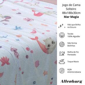 Traga um toque de encanto e conforto ao quarto das crianças com o Jogo de Cama Infantil Mundo Kids da Altenburg. Confeccionado em tecido 100% algodão malha fio penteado, ele garante noites de sono certas e muita diversão. O destaque especial fica por conta da fronha com viés que brilha no escuro, um detalhe mágico que as crianças vão adorar O lençol com elástico oferece praticidade, ajustando-se perfeitamente a colchões de até 30cm de altura. Estampas disponíveis: Encantadas: Cores vibrantes e alegria para noites cheias de sorrisos. Náutico: Mistérios do fundo do mar com piratas e tubarões. Amazônia: Um mergulho na floresta tropical repleta de cores e aventura. Virtual: A energia dos jogos retrô em estampas criativas. Mar Magia: Tons suaves e uni-cats em um universo lúdico. Crie um ambiente mágico e aconchegante para as crianças com o Jogo de Cama Infantil Mundo Kids, disponível na Madrigal Enxovais