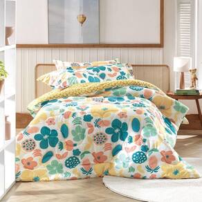 O jogo Folk Art é uma explosão de criatividade A estampa traz como destaque flores super coloridas para alegrar a criançada. A cartela de cores alegres agrega ainda mais doçura a peça, além de deixar a decoração da cama um charme.