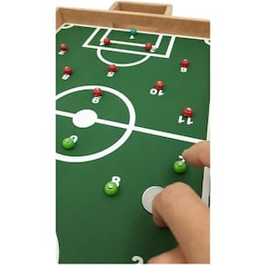 Objetivo: empurrar com o dedo a moeda de 5 centavos para dentro do gol, respeitando a regra do jogo. Idade: a partir de 5 anos. Peso: 1130 kg, comprimento: 50 cm, largura: 27,5 cm, altura: 3,5 cm. Devido à complexidade do produto as medidas são aproximadas.