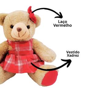 -01 Unidade Ursa Vestido Xadrez e Laço Vermelho