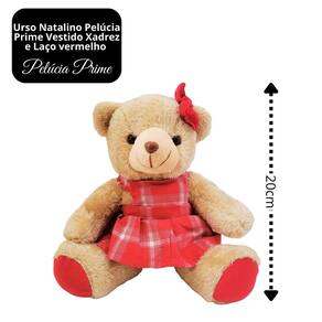Jogo 2 Ursos de Pelúcia Natalino – Vestido Xadrez, Gorrinho e Lacinho Vermelho 20cm