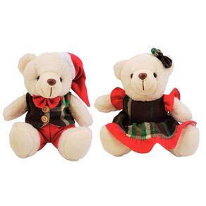 Jogo Casal Urso de Pelúcia Natalino – Roupa Xadrez Vermelho e Verde 20cm