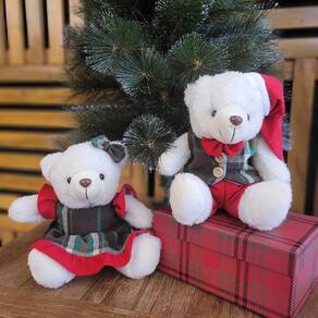 Encante sua decoração de Natal com este Jogo Casal Urso de Pelúcia Prime em tom creme, vestido com traje xadrez vermelho e verde e delicado lacinho xadrez, que traz um ar aconchegante e sofisticado à sua casa.