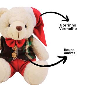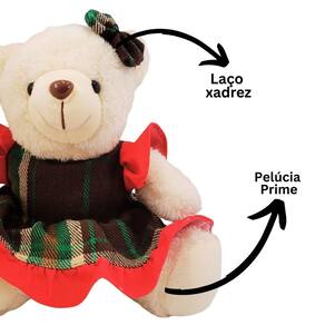 Kit Casal Urso Natal Pelúcia Prime Creme Roupa Xadrez 20cm