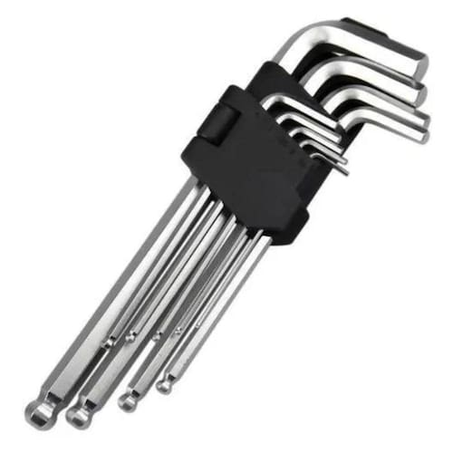 Jogo Chave Allen Abaulada 1,5 A 10 Mm 9 Peças Profissional Descrição do vendedor Jogo de chave allen abaulada 1,5 a 10 mm 9 peças Belzer Peso: 0.30 Kg Acabamento oxidado. Possuem uma das extremidades arredondadas, permitindo até 30° de inclinação na execução da tarefa. Indicadas para trabalhos em locais de difícil acesso. Especificações Técnicas: Composiçao: Aço Cromo Vanádio Tamanhos: 1,5 - 2 - 2,5 - 3 - 4 - 5 - 6 - 8 - 10 mm