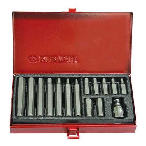 Jogo de chave allen tipo bits intercambiáveis com 15 peças fabricadas em aço cromo vanádio. Contém chaves longas e curtas. Acompanha um estojo para melhor organização das peças e segurança no transporte.Marca: King TonyCaracterísticas:-encaixe: 1/2.-material: Aço cromo vanádio.-chaves longas e curtas.Conteúdo:-7 Bits curto: 4, 5, 6, 7, 8, 10 e 12mm.-7 Bits longo: 4, 5, 6, 7, 8, 10 e 12mm.-1 Adaptador 1/2 x 10mm.-1 Estojo metálico.Aplicação: Ideal para carros, motocicletas, bicicletas e máquinas.Código: 1015MQ