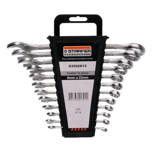 O Jogo de Chave Combinada 12 Peças 6 a 22mm Profissional da marca Starfer é uma ferramenta robusta e confiável, projetada para atender às demandas de profissionais e entusiastas que buscam qualidade excepcional em suas atividades. Cada chave é fabricada em aço carbono cromado, proporcionando durabilidade e resistência contra desgastes do uso contínuo. Com um total de 12 peças, o jogo abrange uma ampla variedade de tamanhos, variando de 6mm a 22mm, garantindo versatilidade para lidar com diferentes tipos de parafusos e porcas. A combinação de boca fixa e estrela confere praticidade, permitindo ao usuário realizar diferentes tipos de trabalhos com eficiência. O acabamento cromado não apenas confere um visual elegante, mas também oferece proteção contra corrosão, prolongando a vida útil das chaves. Seja para em oficinas, mecânicas ou para tarefas domésticas, o Jogo de Chave Combinada Starfer é uma escolha confiável, proporcionando desempenho consistente e durabilidade excepcional em todas as aplicações. Marca: Não Informado