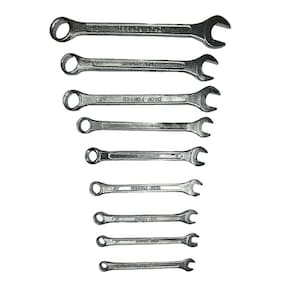Jogo de chave combinada cromo vanádio starfer 6 -17 contém 8 peças com acabamento em cromo vanádio, é indicada para aperto e desaperto de porcas, parafusos quadrados e sextavados.