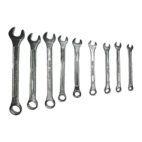 JOGO DE CHAVE COMBINADA CROMO VANÁDIO STARFER 6 -17 CONTÉM 8 PEÇAS COM ACABAMENTO EM CROMO VANÁDIO, É INDICADA PARA APERTO E DESAPERTO DE PORCAS, PARAFUSOS QUADRADOS E SEXTAVADOS.
