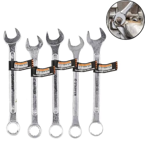 O jogo de chave combinada fixa e estrela é ideal para aperto e desaperto de parafusos ou porcas com perfil quadrado, sextavado ou dodecagonal. Fabricado em aço especial oferece durabilidade e resistência, para funcionamento adequado é necessário usar a chave de tamanho compatível com a cabeça da porca ou parafuso.