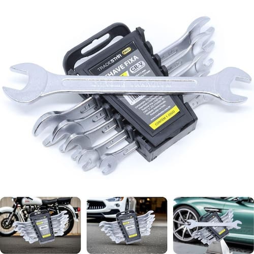 O Kit de Chaves Boca Fixa Tradestar 6 Peças é a ferramenta ideal para quem busca versatilidade, durabilidade e precisão no aperto ou desaperto de porcas e parafusos sextavados. Fabricadas em Cromo Vanádio de alta resistência, estas chaves foram desenvolvidas para profissionais e entusiastas do faça-você-mesmo, garantindo desempenho confiável em uma ampla variedade de aplicações.