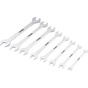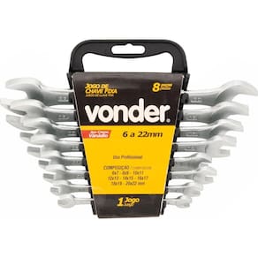 Conteúdo da embalagem1 Jogo de chaves fixas, composto por um suporte plástico com 8 peças, sendo: 6 mm x 7 mm, 8 mm x 9 mm, 10 mm x 11 mm, 12 mm x 13 mm, 14 mm x 15 mm, 16 mm x 17 mm, 18 mm x 19 mm e 20 mm x 22 mmAplicações e dicas de usoIndicado para apertar e soltar porcas e parafusos sextavados. Nunca utilizar prolongadores sobre as chaves, pois isso aumentará o torque aplicado e diminuirá a vida útil das ferramentas. Uso industrial.Destaques e diferenciaisChaves produzidas em aço cromo vanádio, proporcionando maior resistência e durabilidade. Contam com acabamento cromado fosco que aumenta a proteção contra oxidação/corrosão. Possuem pontas estreitas que possibilitam o uso em locais de difícil acesso. DETALHES TÉCNICOS Material do corpo da chave: Aço cromo vanádio Acabamento da Chave: Cromado fosco Conteúdo: 6 mm x 7 mm, 8 mm x 9 mm, 10 mm x 11 mm, 12 mm x 13 mm, 14 mm x 15 mm, 16 mm x 17 mm, 18 mm x 19 mm e 20 mm x 22 mm Marca: Não Informado