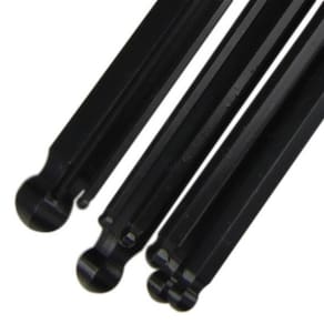 Feita em Aço Cromo Vanadio, com acabamento oxidado preto, possui 2 braços com comprimentos diferentes, sendo o maior com ponta Bola, que permite utilizar a chave hexagonal inclinada em relação ao parafuso com encaixe hexagonal.