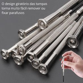 Kit jogo de chave precisão reparo relógio relojoeiro 11 pçs fertak O kit jogo de chave de precisão para reparo de relógios da fertak é uma ferramenta essencial para entusiastas de relojoaria, relojoeiros profissionais e qualquer pessoa que deseje realizar reparos em relógios com precisão e facilidade. Este conjunto de 11 peças oferece um conjunto versátil de chaves de fenda e outras ferramentas, cuidadosamente projetadas para atender às demandas de trabalhos delicados e minuciosos em relógios. Características - adequado para e amador - apoio superior giratório - haste de aço cromado com ranhuras para maior aderência e transmisão de força - ideal para substituir baterias, ajustar pulseiras, fazer reparos em movimentos internos Ficha técnica Material da ponta: aço temperado de alta qualidade Estojo incluso: sim Marca: fertak Itens inclsuos 03 chaves philips: ph 00, ph 0 e ph 1 01 chave pontuda 01 chave com ponta achatada 06 chaves de fenda: 1, 1.2, 1.4, 1.8, 2.4 e 3mm Sobre a fertak A fertak, fundada em 2010 no espírito santo, é uma empresa líder na importação e distribuição de ferramentas manuais no brasil, com foco em atendimento excepcional e qualidade dos produtos. Busca continuamente e mantém o alto padrão de atendimento, qualidade nos produtos oferecidos e ética com seus parceiros. Marca: Não Informado Ean: 7908642006165
