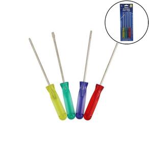 Este kit prático contém duas chaves de fenda, uma de 4mm x 100mm e outra de 5mm x 100mm, ambas ideais para apertar e soltar parafusos em diversos tipos de projetos. Para dar ainda mais versatilidade, você também terá duas chaves Philips, PH0 x 100mm e PH1 x 100mm, que são essenciais para trabalhar com parafusos de cabeça cruzada.