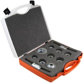 Características: -Possui Adaptadores Universais de 32, 35 e 40MM -Possui Adaptadores específicos para os veículos Ford Focus 2008, BMW, Mini, Iveco Daily e Volkswagen Passat 2005. -Roscas Direita e Esquerda.