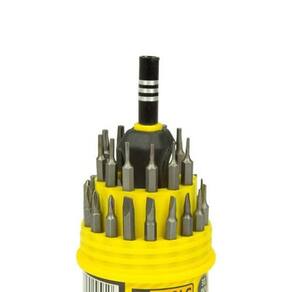 Com 31 peças de alta qualidade, cada chave possui cabo emborrachado para garantir conforto e segurança durante o uso. Além disso, o encaixe da chave é imantado, facilitando o manuseio de parafusos e evitando quedas indesejadas.