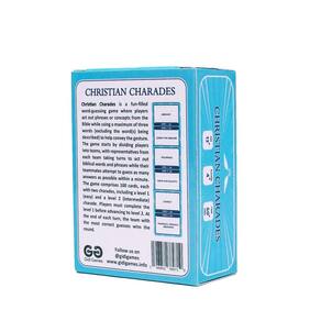 Christian Charades é um jogo divertido de adivinhar palavras onde os jogadores representam frases ou conceitos da Bíblia enquanto usam no máximo três palavras (excluindo as palavras descritas) para ajudar a transmitir o gesto. O jogo começa dividindo os jogadores em times, com representantes de cada equipe se revezando para representar palavras e frases bíblicas enquanto seus companheiros tentam adivinhar o máximo de respostas possível em um minuto. O jogo inclui 100 cartas, cada uma com duas charadas, incluindo uma charada de nível 1 (fácil) e uma charada de nível 2 (intermediário). Os jogadores devem completar o nível 1 antes de avançar para o nível 2. No final de cada turno, a equipe com as suposições mais corretas vence a rodada. - O jogo de charadas cristãs e bíblicas é um jogo de charadas divertido onde você pode representar palavras/frases cristãs para seus colegas de equipe adivinharem - Este baralho tem 200 charadas diferentes em um baralho de 100 cartas (duas charadas por carta) - As cartas têm dois níveis. O nível 1 é normalmente uma farsa de uma palavra. O nível 2 tem duas ou mais palavras. - Este jogo é competitivo, mas divertido, e ajudará a testar seu conhecimento sobre cristianismo e criatividade. - O jogo é jogado com duas equipes diferentes, competindo para descobrir o máximo de palavras de charadas possível em um minuto.