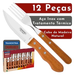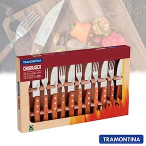 Jogo para Churrasco Tramontina Dynamic com Lâminas em Aço Inox e Cabos de Madeira Natural 12 Peças