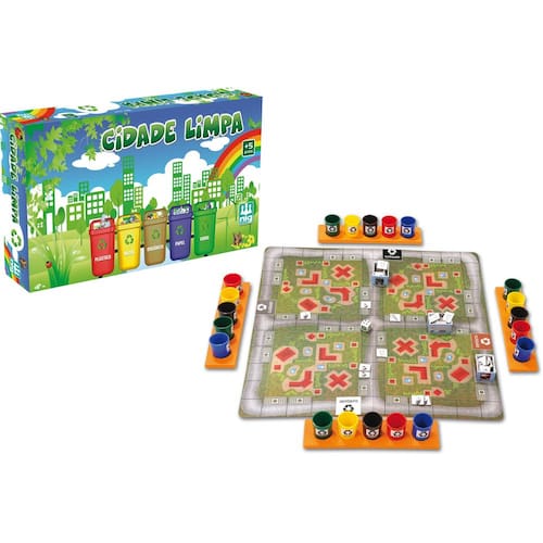 CARACTERÍSTICAS GERAIS - A partir de 5 anos. - Jogo didático em que a criança será responsável por coletar o lixo para reciclagem, desenvolvendo conceitos de preservação do meio ambiente e consciência ecológica. - Cada jogador recebe um caminhão de plástico, que percorre a cidade tabuleiro recolhendo o lixo. Será então feita a seleção do material vidro/ papel / metal / plástico . Ean: 7896200711753
