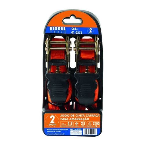 2 Cinta Catraca 25mm X 4,5m 250Kg 2 pçs R010272 Riosul Tools.