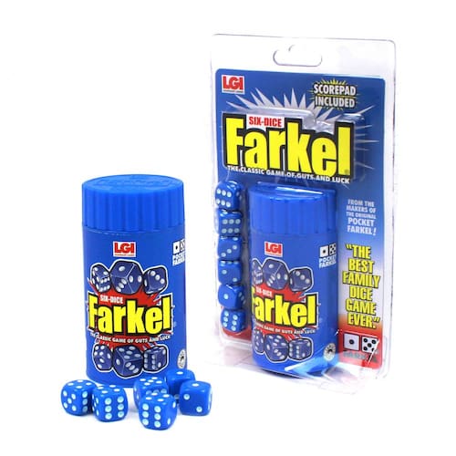 Jogo clássico de Farkel - JOGO FAMILIAR ICÔNICO: Um dos jogos de dados favoritos do mundo, Farkel é um jogo divertido, rápido e de alta pontuação que leva minutos para aprender e se divertir. - JOGO EDUCACIONAL: Um jogo educacional perfeito que não só utiliza habilidades matemáticas, mas também exercita a memória visual. Compre isso para seu jovem estudante favorito hoje! - DIVERSÃO PARA TODOS: Com instruções fáceis de seguir e peças mínimas, o Classic Farkel é perfeito para jogadores a partir de 8 anos. A noite de jogos ficou mais fácil e divertida para todos! - PORTÁTIL: o estojo pequeno da Classic Farkel facilita levá-lo em uma viagem de carro, acampar ou colocar na bolsa a caminho de uma festa. O tubo de jogo Farkel mede 4,5 polegadas de altura a 2 polegadas de largura. - ESPECIFICAÇÃO: RISCO DE ASFIXIA: Não é adequado para crianças menores de 3 anos. Recomendado para maiores de 8 anos. Projetado para 2 a 6 jogadores. Tempo de jogo 15 minutos. Contém 6 dados e instruções.
