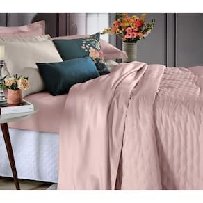 Jogo Cobre Leito Toque de Algodão 250 Fios Queen 240x260cm Rosa Tule -