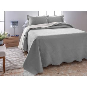 Jogo Colcha Cobre Leito Lisa Dupla Face Ultrasonic - Jolitex Cinza Prata - King -